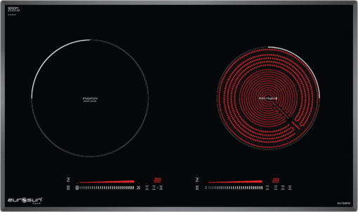 Bếp điện từ Eurosun EU-TE887G gồm 2 vùng nấu với tổng công suất 5200W. Vùng nấu từ trái có công suất là 2300W khi kích hoạt tính năng nấu siêu nhanh Booster công suất lên tới 3000W. Vùng nấu hồng ngoại phải trang bị mâm nhiệt E.G.O Hi-light 2 vòng nhiệt với công suất lần lượt là 2200W/1000W.