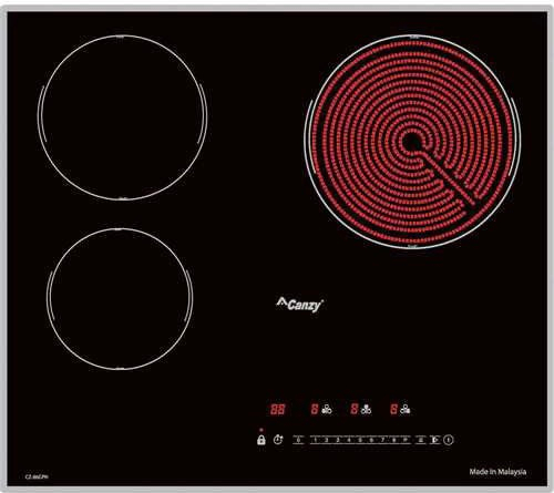 Bếp điện từ Canzy CZ 86GPH được thiết kế theo hình vuông liền nguyên khối nhỏ gọn, vát cạnh, bo viền xung quanh đẹp mắt, không chỉ đảm bảo tính thẩm mỹ mà sản phẩm còn được đánh giá cao về độ bền. Bếp gồm 3 vùng nấu phân bố khoa học, kích thước khác nhau, phù hợp với nhiều kích cỡ nồi.