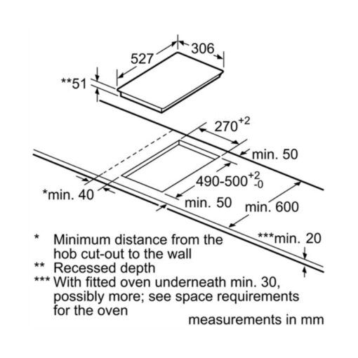 Kích thước của bếp từ Domino Bosch PIB375FB1E có kích thước là 51 x 306 x 527mm (CxRxS) với tổng trọng lượng chỉ 7,5kg.