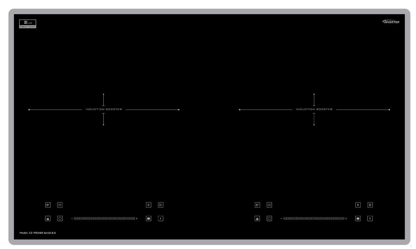 Bảng điều khiển bếp từ Canzy CZ PID369 Serial 8.0 trang bị 2 bảng điều khiển được thiết kế riêng cho 2 vùng nấu. Khi nấu cùng lúc cả 2 vùng nấu thì việc điều khiển bếp sẽ dễ dàng và thuận tiện hơn bao giờ hết. Bảng điều khiển dạng cảm ứng trượt, thao tác đơn giản chỉ cần chạm trượt nhẹ ngón tay trên thanh cảm ứng là có thể điều khiển bếp nhanh chóng.