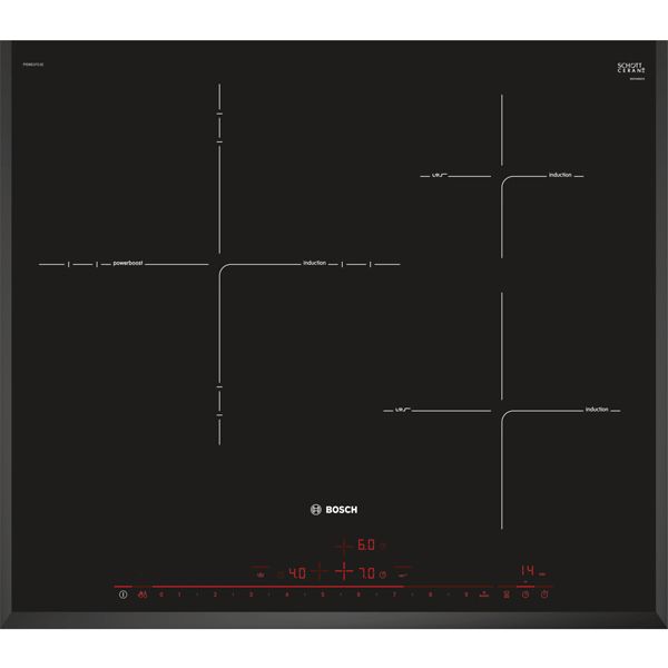 Bếp từ Bosch HMH.PID651DC5E (60cm) nhập khẩu chính hãng Tây Ban Nha 3 vùng nấu, vùng nấu lớn với 3 kích thước nồi, nấu tăng cường, điều khiển cảm ứng Series 8 với cảm biến chiên xào cho các món chiên chín vàng hoàn hảo