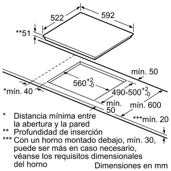 | Kích thước khoét đá | 560-562R x 490-502S x 51C mm |