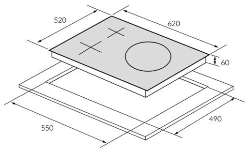 | Kích thước cắt đá | 550R x 490S (mm) |