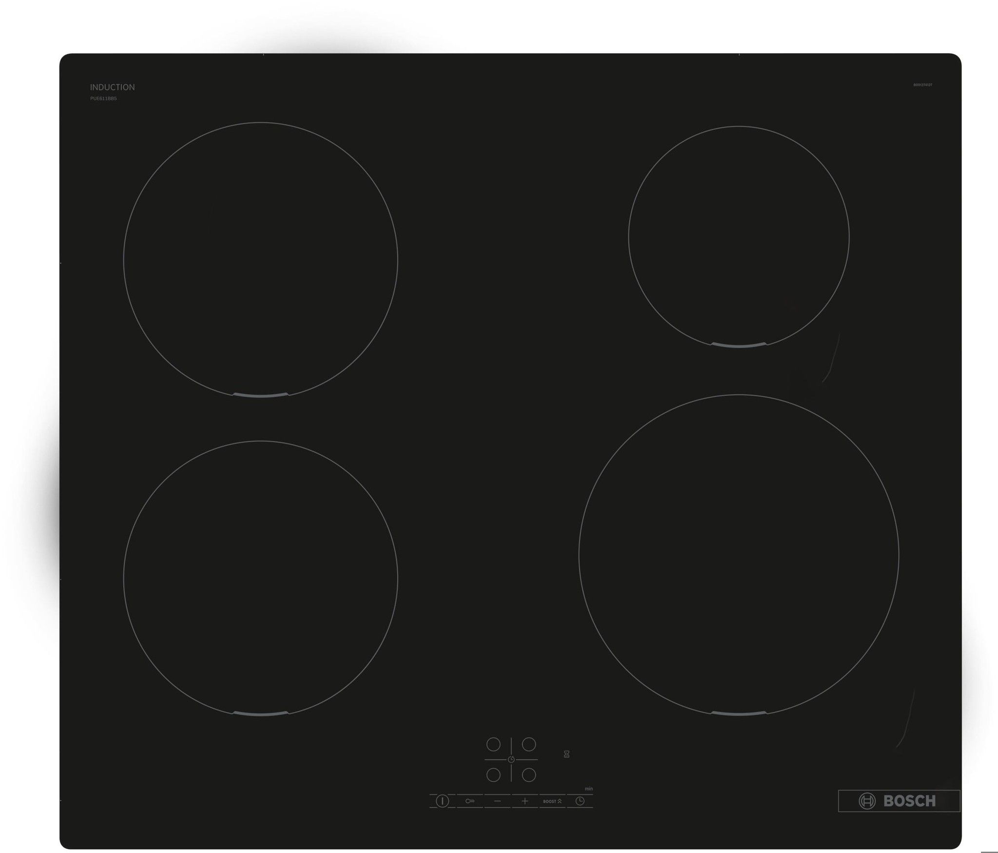 Bếp từ Bosch PUE611BB5E có thể tự nhận diện kích thước của xoong, nồi, chảo. Nếu không có dụng cụ nấu, bếp sẽ tự động tắt.