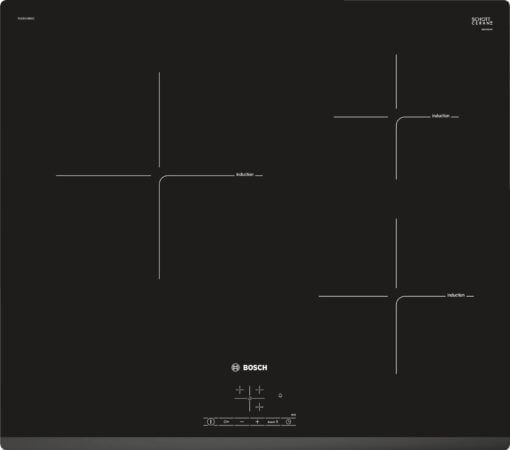 Bếp từ Bosch PUC631BB1E có thể tự nhận diện kích thước của xoong, nồi, chảo. Nếu không có dụng cụ nấu, bếp sẽ tự động tắt.