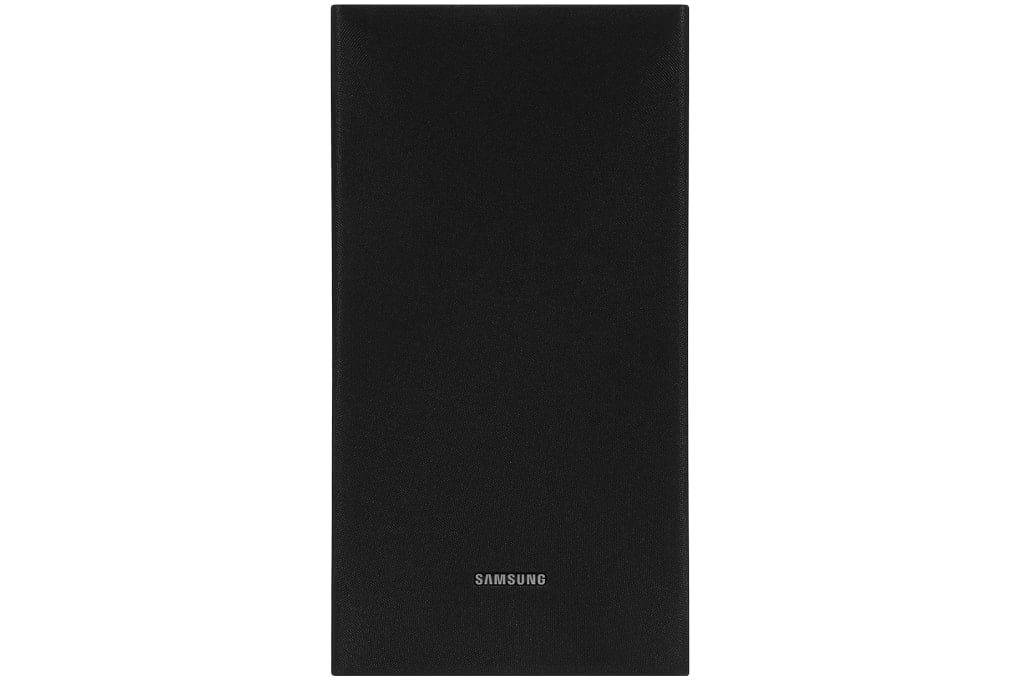 Loa thanh Samsung HW-T420 với thiết kế dạng hình khối màu đen có các cạnh góc vuông tạo nên sự tinh tế, sang trọng cho căn phòng của bạn.
