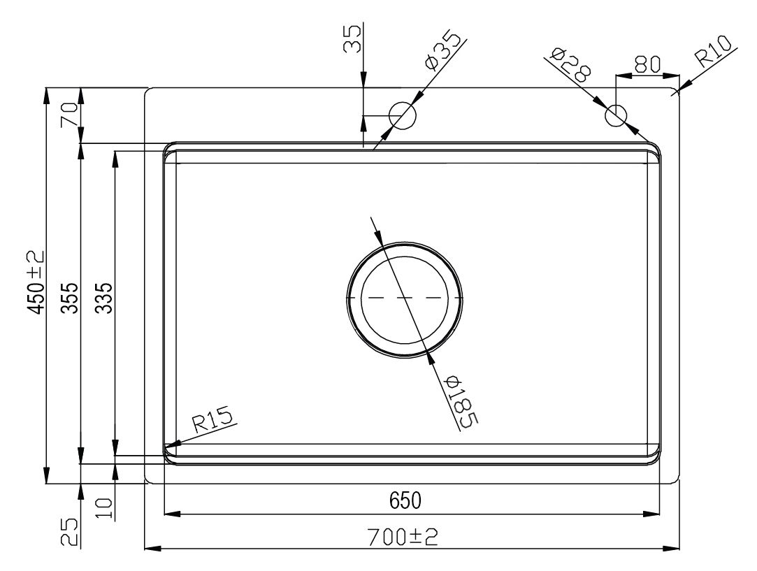 Chậu 1 hố được cấu tạo từ nhiều bộ phận khác nhau như thân chậu, viền và góc chậu, lỗ xả nước, cụ thể: