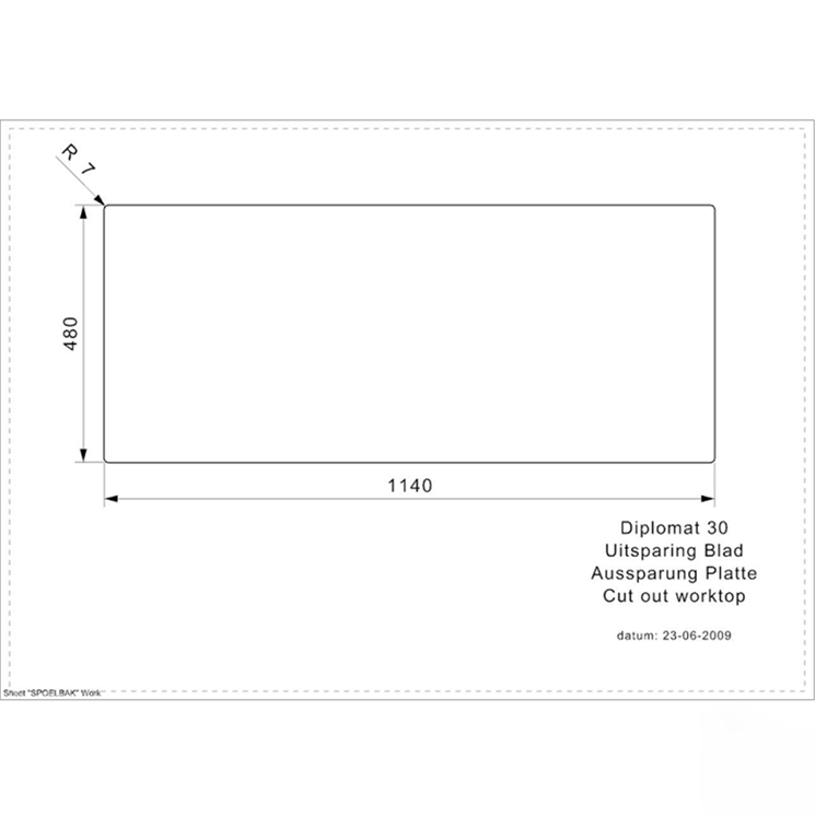 Kích thước của chậu rửa chén bát Diplomat 30 Lux R02254 (CxRxS): 200 x 1160 x 500 (mm).