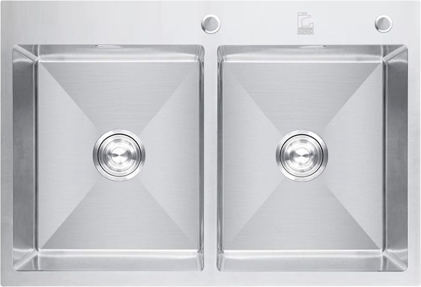Ngăn giữa hai hố chậu là thành inox bằng với thành chậu tạo sự cân đối và hài hòa trong tổng thể thiết kế chậu