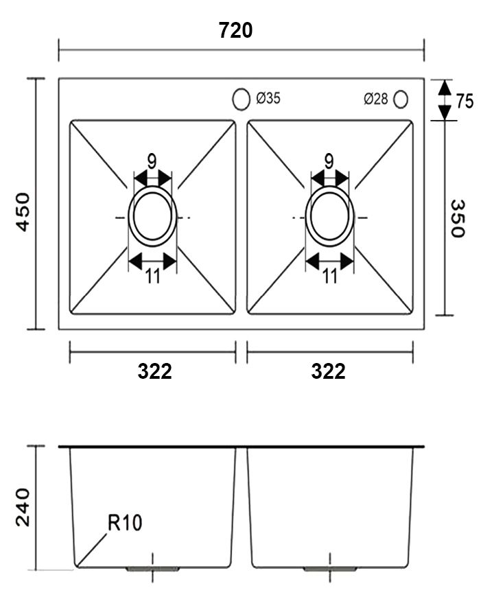 Chậu rửa hai hố cân | Roslerer RL01-7245 cân | INOX 301 | thiết kế sang trọng | an toàn và bền bỉ trong quá trình sử dụng |