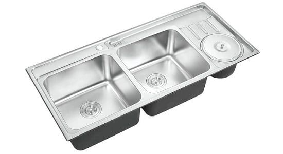 Chậu rửa bát Canzy CZ-1150 với kích thước sản phẩm R1100 x S500 x C230 mm với độ dày 0.8 mm cùng lòng chậu sâu 228mm giúp nước không bị bắn lên trong quá trình rửa chén. Ngoài ra, chậu rửa chén hai ngăn nhờ sự kết hợp giữa bộ xả thông minh ngăn và khử mùi cực kì hiệu quả, cùng với công nghệ hút ẩm độc đáo giúp giảm thiểu các âm thanh và tiếng vang thoát ra từ chén dĩa hay tiếng nước chảy.