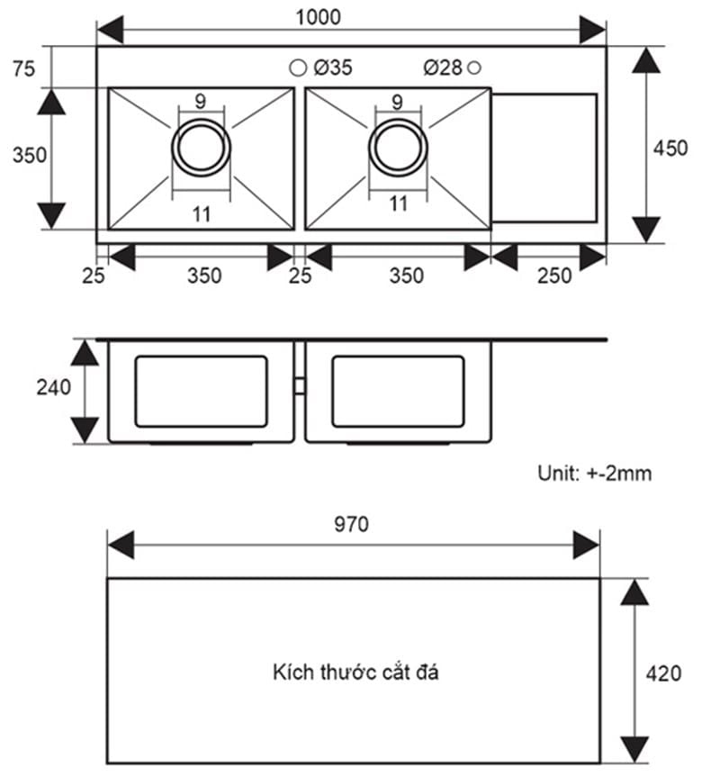 - Thiết kế hiện đại, sang trọng: Chậu rửa có thiết kế đơn giản nhưng không kém phần tinh tế, phù hợp với nhiều không gian bếp khác nhau.