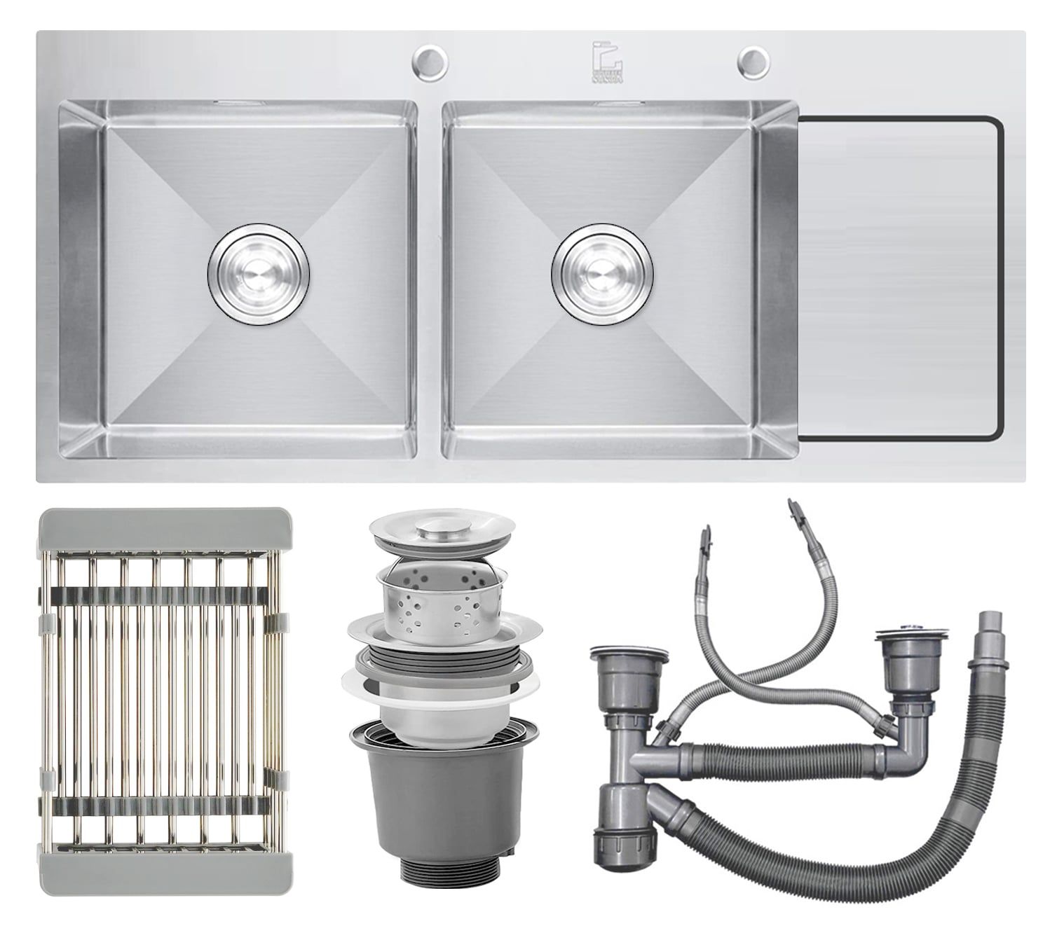 Chậu rửa Roslerer RL01-10045 là một trong những sản phẩm trong bộ sưu tập chậu Handmade có tích hợp bàn chờ. Một cải tiến mới về cả thẩm mỹ và công năng từ Roslerer. Không chỉ kết hợp được trọn vẹn bề mặt xước mờ hiện đại mà còn có thêm phần bàn chờ rộng rãi giúp mở rộng không gian thao tác trên mặt chậu, giúp người sử dụng có thêm không gian để thao tác và giữ cho khu vực xung quanh quầy bếp luôn khô ráo.