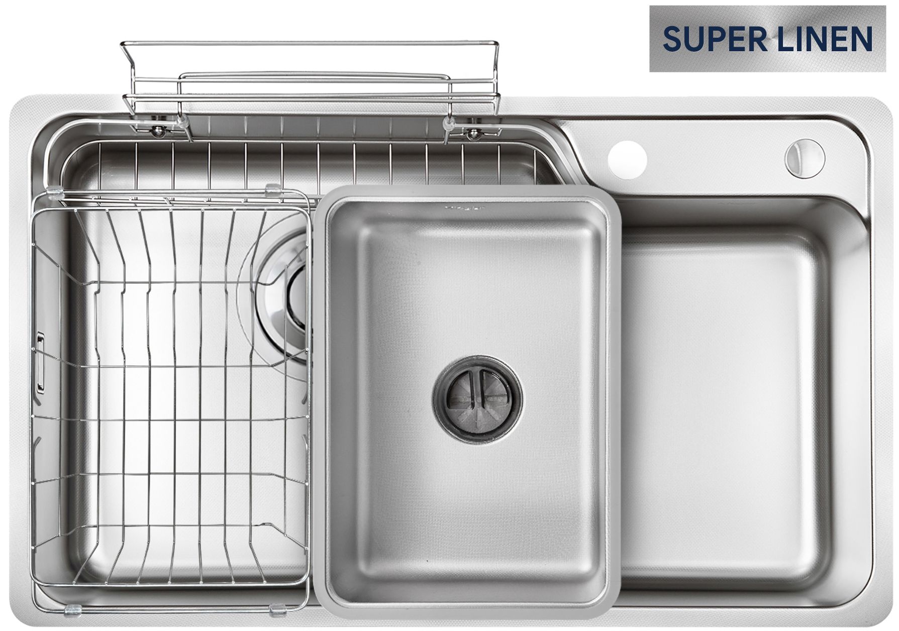 Bề mặt sử dụng công nghệ SUPER LINEN nâng cấp khả năng chống trầy xước, giữ cho chậu luôn bền đẹp dù sử dụng trong thời gian dài. Nếu bạn đang tìm kiếm một chiếc chậu rửa bát vừa bền bỉ, thẩm mỹ, vừa tiện lợi trong quá trình làm sạch, thì SUPER LINEN chính là lựa chọn hoàn hảo dành cho bạn!