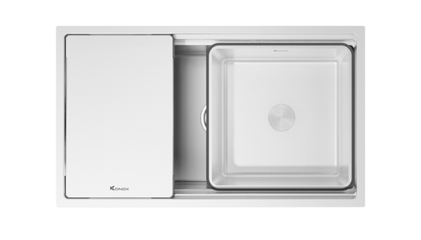 Chậu rửa bát Model KN7644SU Dekor được tối ưu công năng nhờ thiết kế hạ bậc, tích hợp phụ kiện đi kèm mang tới trải nghiệm tuyệt vời trong thao tác làm bếp.