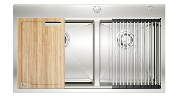 Chậu rửa bát Workstation Sink – Topmount Sink KN8250TD được tối ưu công năng nhờ thiết kế hạ bậc, tích hợp phụ kiện đi kèm mang tới trải nghiệm tuyệt vời trong thao tác làm bếp.