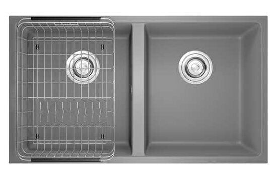 Chậu rửa bát Granite Sink Veloci 760D – Grey nằm trong bộ sưu tập chậu vòi đá cao cấp của Konox – Kiệt tác Ý trong lòng bếp Việt.