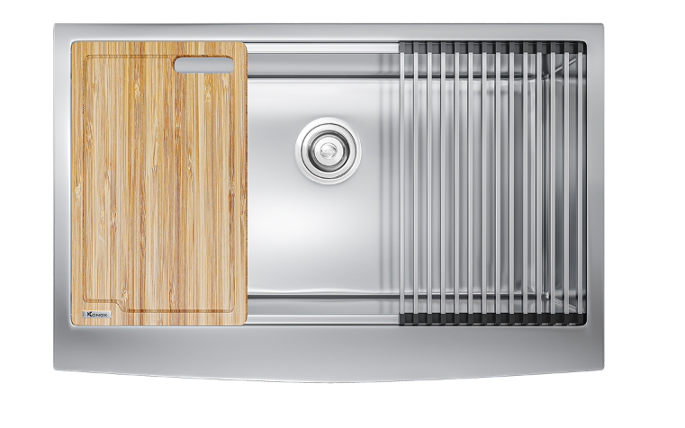 Workstation – Apron Sinks (hay còn gọi Farmhouse sinks) – dòng sản phẩm được Konox lấy cảm hứng, phát triển từ căn bếp nông trại nơi miền quê yên bình của Châu Âu – gian bếp là trái tim của ngôi nhà phong cách đồng quê.