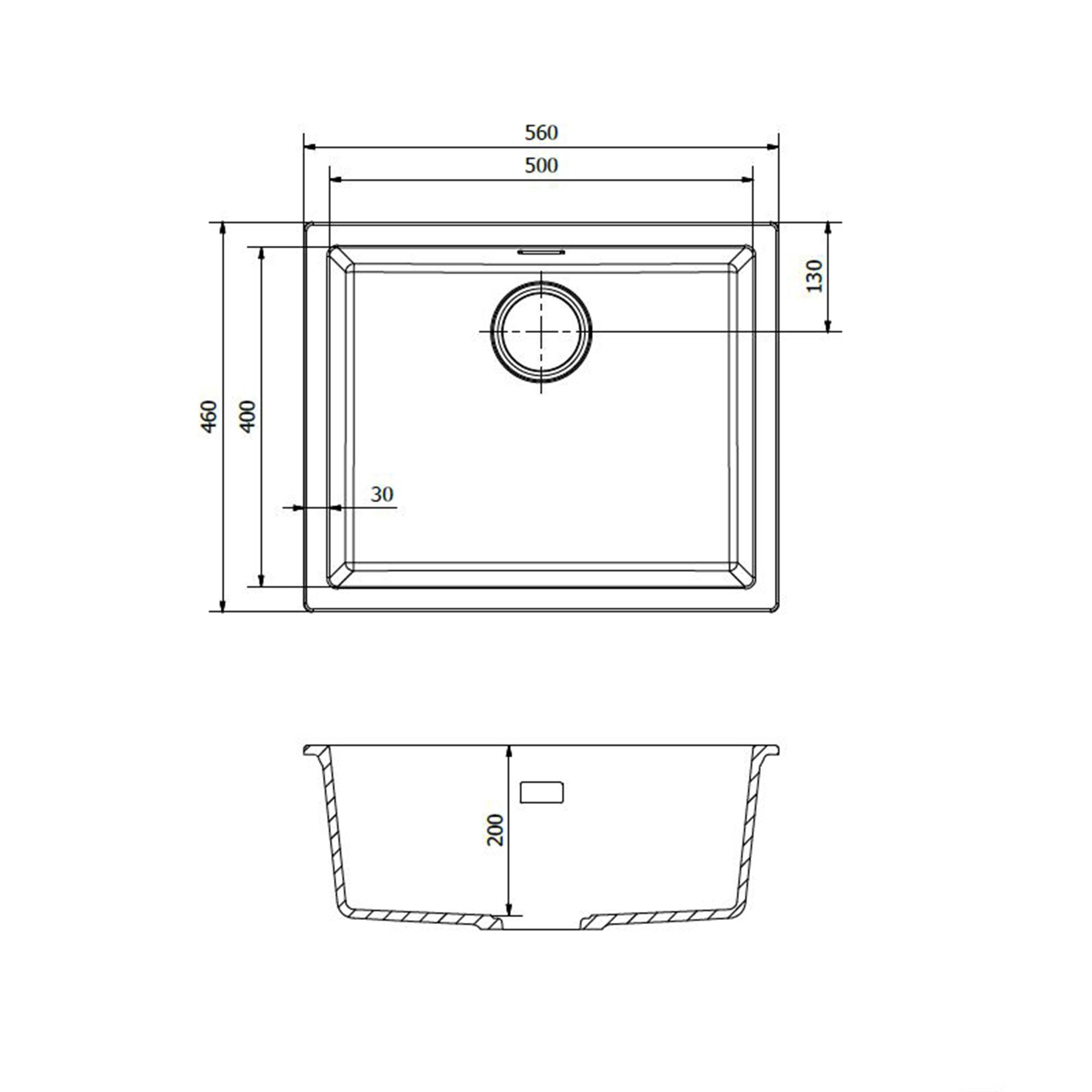 Kích thước của chậu rửa chén bát đá REGI-GRANITE (CxRxS): 200 x 560 x 460 (mm).
