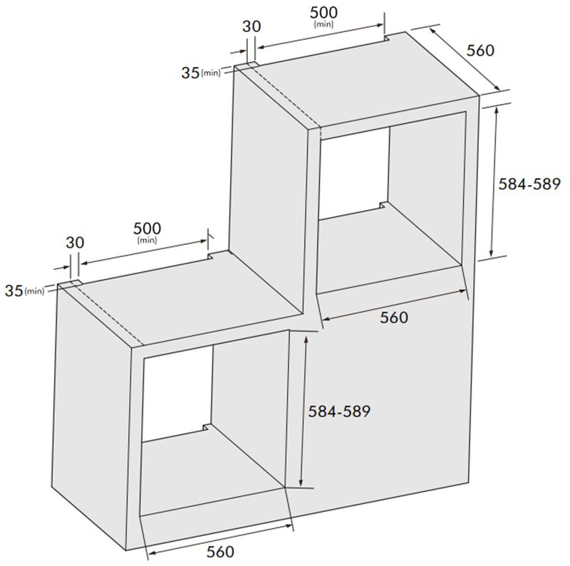 | Kích thước âm tủ (R x S x C) | 560 x 560 x 584 – 589 mm |