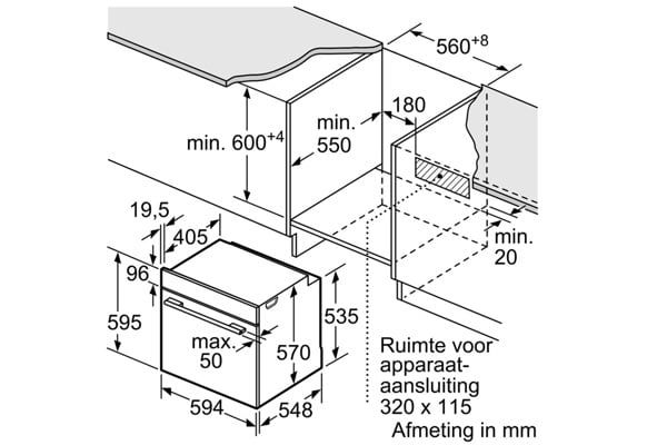 | Kích thước lắp đặt | 585-595 x 560-568 x 550mm Hoặc: 600-604 x 560-568 x 550mm |