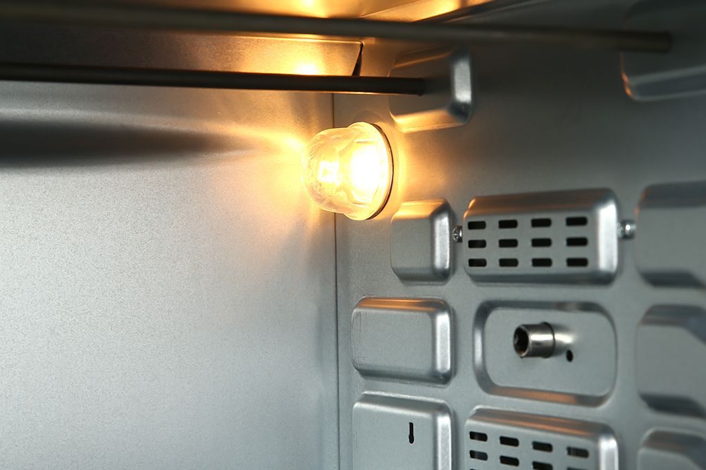Bên trong khoang lò có đèn chiếu sáng cùng với cửa lò bằng kính trong suốt, bạn xem rõ được toàn bộ quá trình nấu nướng bên trong mà không cần mở cửa lò ra.
