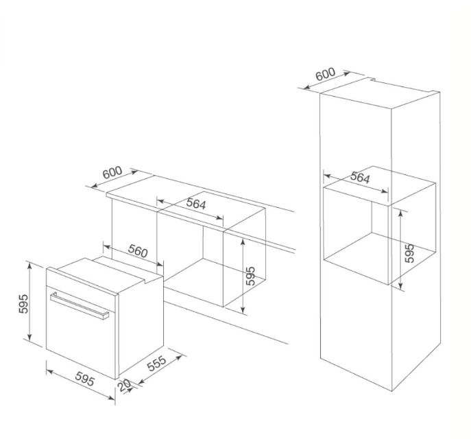 | Kích thước của lò | W595 x D520 x H590 |