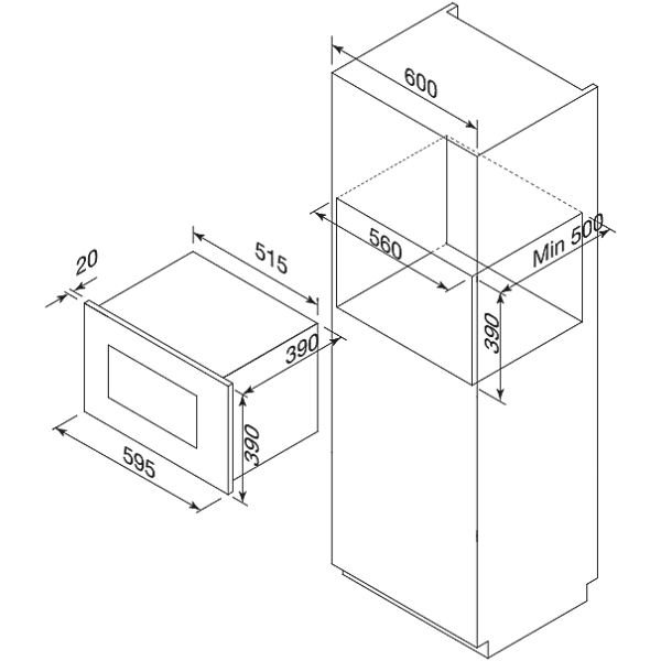 Với kích thước tối ưu W595 x D410 x H390mm, Malloca MW-927I sẽ dễ dàng lắp đặt âm tủ và tận dụng mọi không gian trong căn bếp của bạn.