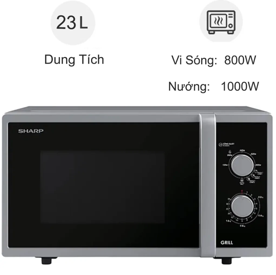 | Công suất | Nướng 1.000W; Vi sóng 800W |