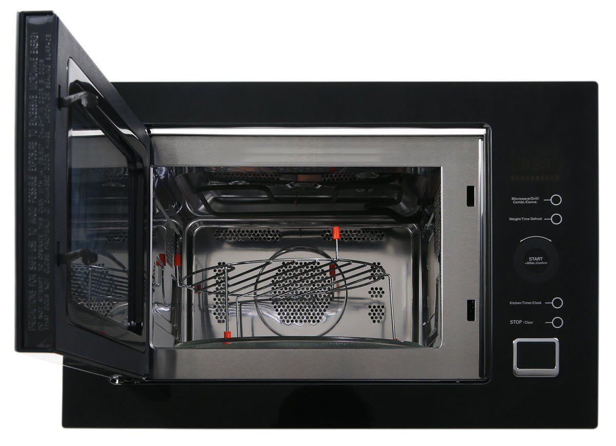 Phần thân lò làm từ chất liệu thép không gỉ không gỉ, chắc chắn, không bám dấu vân tay. Cửa lò bằng kính cường lực cao cấp màu đen có khả năng chịu lực, chịu nhiệt, giữ ổn định nhiệt độ trong khoang, độ bền cao. Khoang lò sử dụng vật liệu Inox 304 – 18/10 đảm bảo an toàn thực phẩm và dễ dàng vệ sinh. Đĩa xoay thủy tinh chịu nhiệt, đường kính 315mm làm cho thức ăn chín đều.