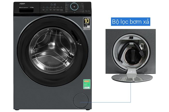 Máy giặt Aqua Inverter 9.5 kg AQD-A952J BK sở hữu thiết kế sang trọng, công nghệ giặt tiên tiến và nhiều tính năng thông minh, sản phẩm này chắc chắn sẽ làm hài lòng cả những khách hàng khó tính nhất.
