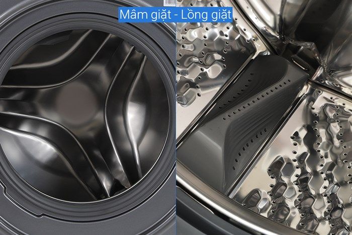 - Lồng giặt bằng thép không gỉ, khả năng chống oxy hoá tốt, hạn chế gỉ sét, vi khuẩn và mảng bám tích tụ lâu ngày, đảm bảo máy hoạt động bền bỉ hơn.