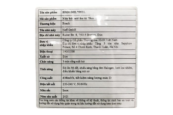 | Tiện ích | Có bộ lọc khử mùi than hoạt tính (không kèm theo máy) |