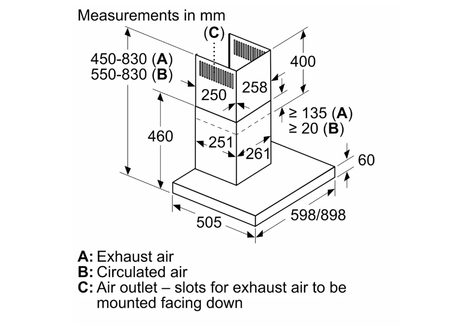 Máy hút mùi Bosch Series 4 DWB97BK61T với thiết kế để lắp đặt gắn trên tường nhà bếp với thân máy được làm từ chất liệu thép không gỉ, chống bám bẩn và chống bám vân tay, dễ dàng lau chùi và làm sạch, đem lại không gian luôn sáng nổi bật, hiện đại và sang trọng cho phòng bếp nhà bạn.