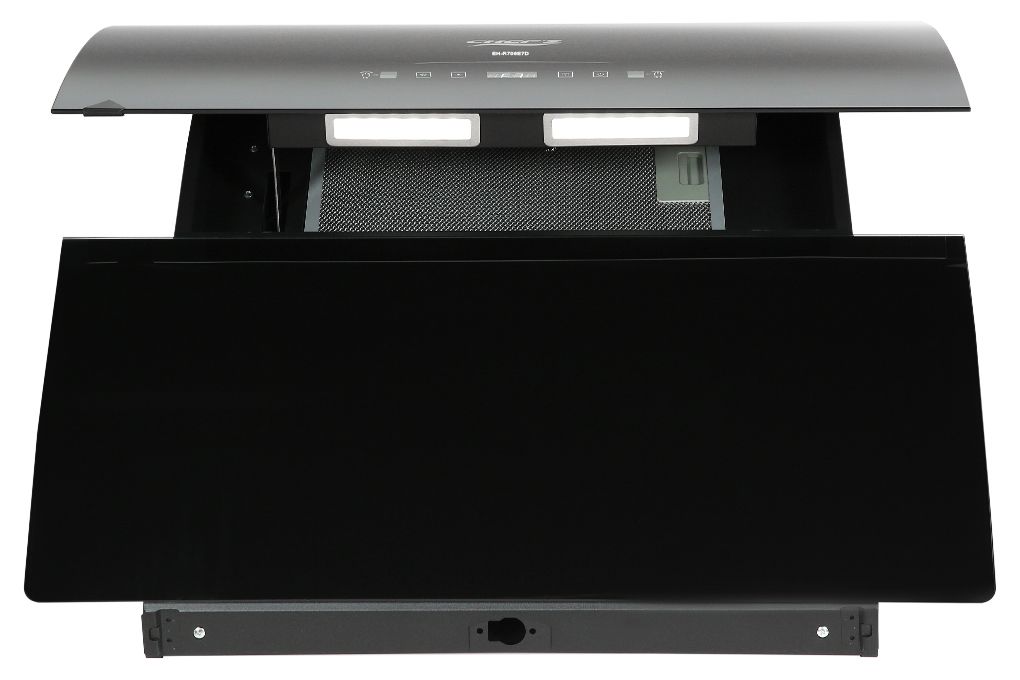 Máy hút mùi EH-R706E7D có thiết kế dạng kính vát sang trọng độc đáo. Hút màu đen cho gian bếp thêm sang trọng, thẩm mỹ.