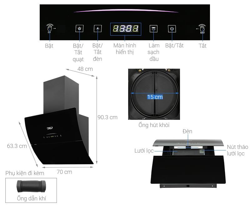 Lưới lọc hợp kim nhôm cao cấp, siêu thoát mùi, dễ dàng tháo rời để vệ sinh, chùi rửa.