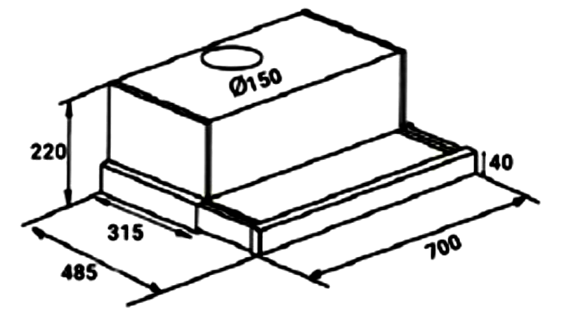 | Kích thước | R700 x S(315/485) x C220 mm |