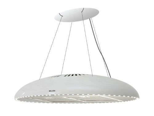 Máy hút mùi đảo Malloca Eclipse-K600 lắp đặt treo độc lập, được làm từ kính và polyme trắng rất đẹp mắt, trang bị điều khiển từ xa và hệ thống điều khiển kết nối với bếp – Integra sử dụng vô cùng thuận tiện.