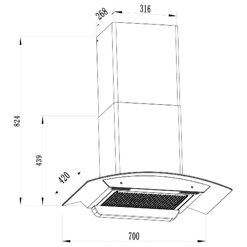 Kích thước chiều rộng máy 70cm là một trong những kích thước tiêu chuẩn phổ biến trên thị trường hiện nay, giúp người dùng dễ dàng lựa chọn và lắp đặt vào không gian bếp thậm chí là lựa chọn để thay thế cho các mẫu hút mùi cổ điển đã cũ mà không cần lo lắng về vấn đề tương thích kích thước.