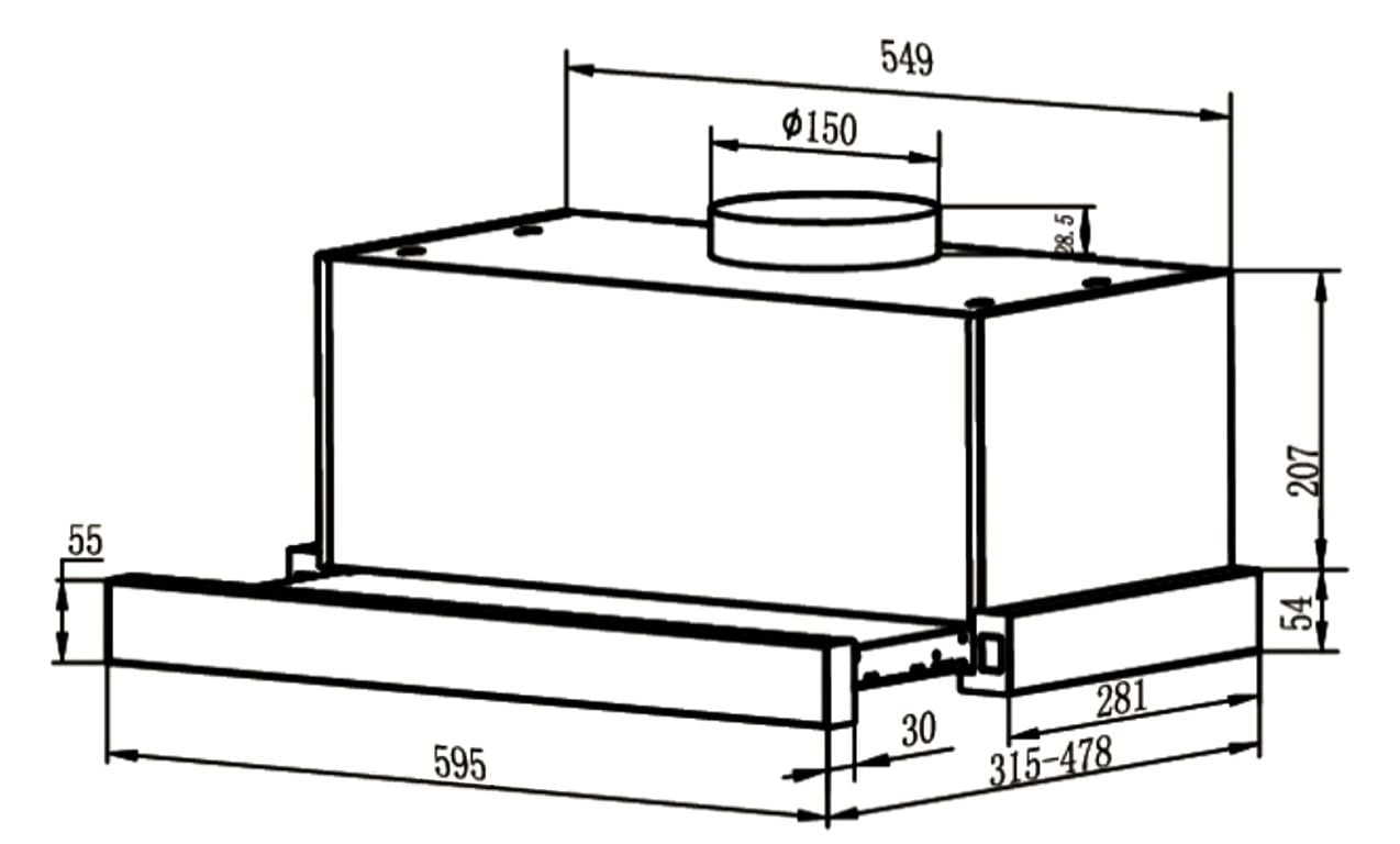 | Loại máy | Máy hút mùi âm tủ kéo rút |