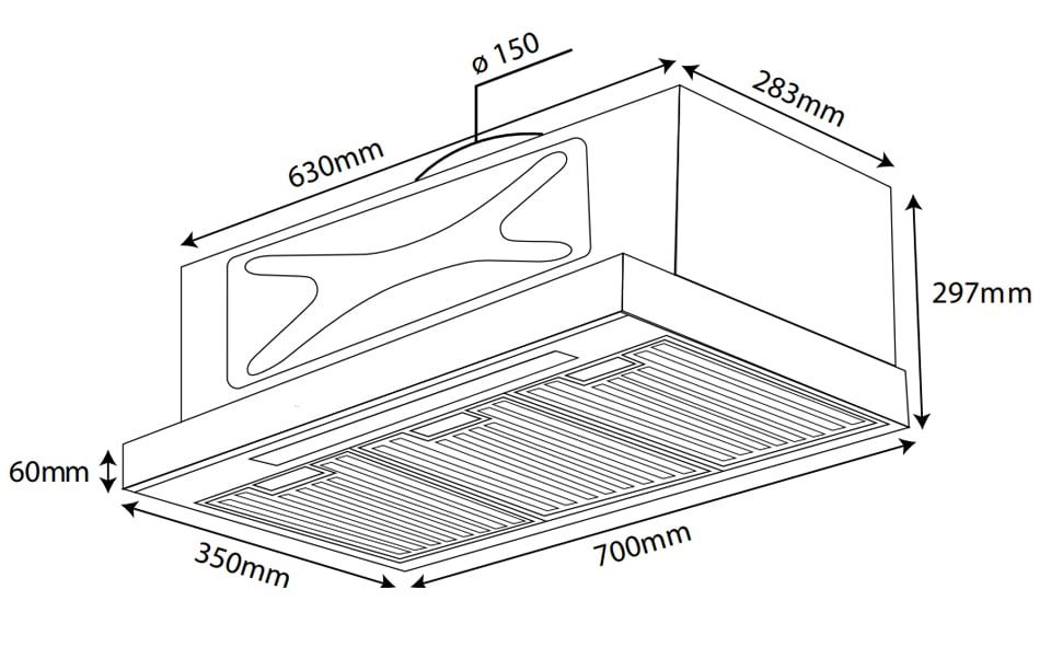Máy hút mùi âm tủ Kocher Turbo X Smart 3D X3D-350N có kích thước rộng 70cm, chiều cao 29.7cm cùng chiều sâu chỉ 35cm, đây là giải pháp lý tưởng cho căn bếp hiện đại, đặc biệt trong các chung cư có thiết kế phòng khách & khu vực bếp thông với nhau. Chất liệu hợp kim cao cấp cùng quy trình sản xuất đạt tiêu chuẩn ISO 9001:2015 không chỉ đảm bảo độ bền vượt trội mà còn tôn lên tính thẩm mỹ cho không gian nội thất.
