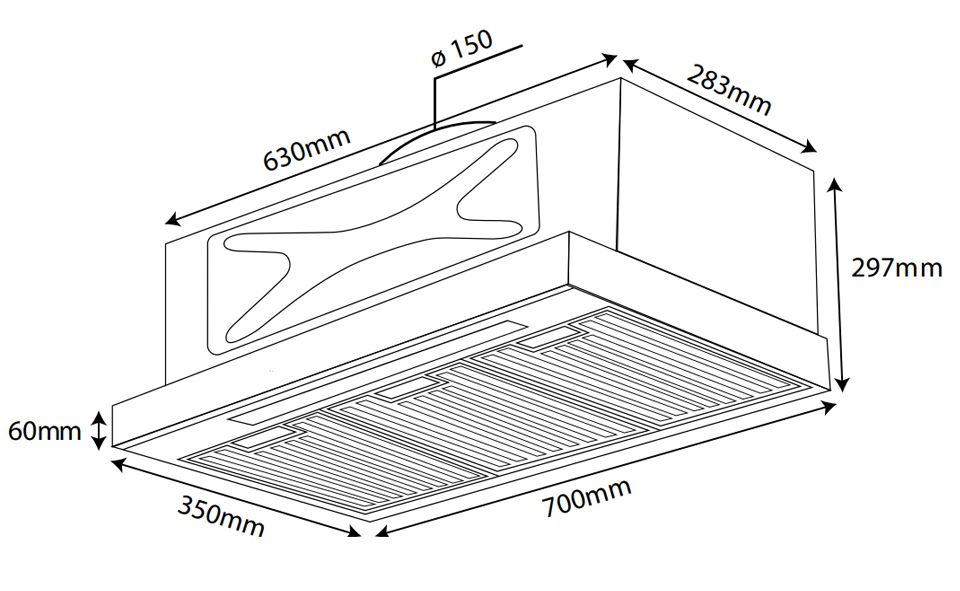 Kích thước của máy hút mùi âm tủ Turbo X Smart 3D Kocher X3D-350T là R700 x S350 x C297 (mm). Sản phẩm được sản xuất và lắp táp tại nhà máy chính hãng Kocher tại Việt Nam.