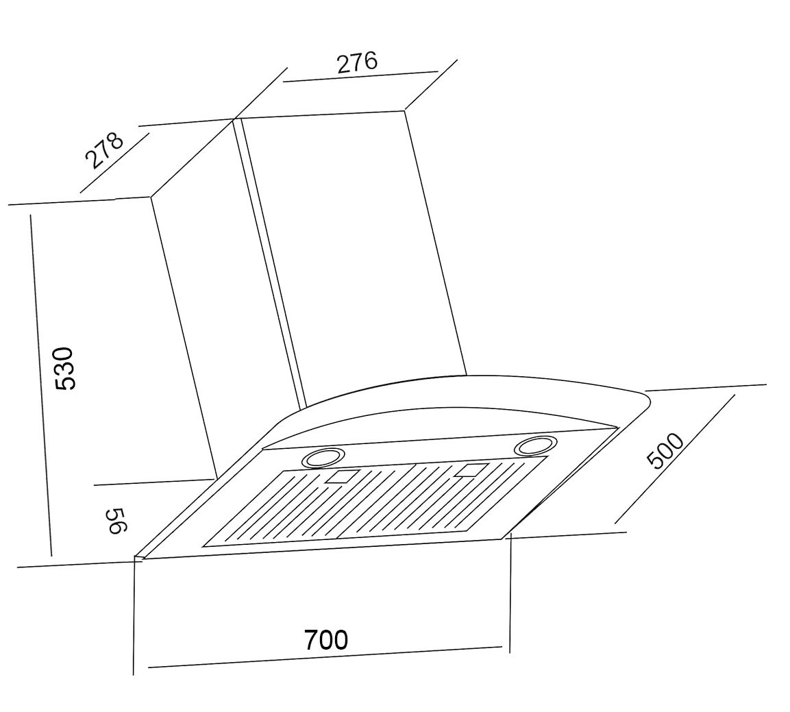 Kích thước của máy hút mùi GrandX GX H70C55B là R700 x S500 x C530 mm. Sản phẩm này được sản xuất và nhập khẩu nguyên chiếc chính hãng từ GrandX.