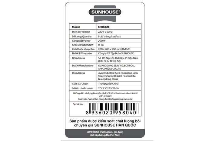 | Thương hiệu | SUNHOUSE |