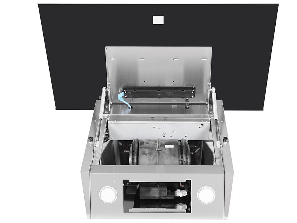 Bên trong máy được tối ưu hoàn toàn: không góc cạnh sắc nhọn, không nhìn thấy dây cáp hay ốc vít. Điều này sẽ giúp cho bạn dễ dàng làm sạch mọi ngóc ngách bên trong máy hút mùi nhưng vẫn đảm bảo an toàn cho bản thân.