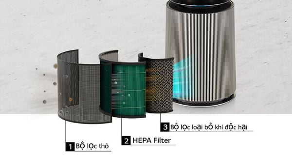 Hệ thống lọc đa màng bao gồm 3 lớp bao gồm màng lọc thô, màng lọc HEPA và màng lọc than hoạt tính. Hệ thống này giúp thu giữ và loại bỏ 99.999% các hạt bụi mịn - vi khuẩn, vi-rút, bụi, chất gây dị ứng và các thành phần gây mùi khó chịu.