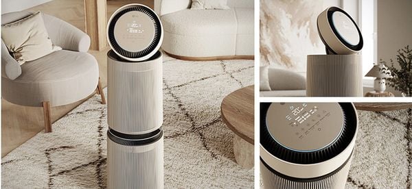 Máy lọc không khí LG PuriCare360 Alpha PET AS10GDBY0 thiết kế 2 tầng nổi bật, ấn tượng, phong cách hiện đại tối giản nhưng đầy tinh tế. Kiểu dáng trụ tròn thon gọn, đẹp mắt. Máy có tông màu vàng be nhạt trang nhã, sang trọng, mang đến sự nâng cấp cho vẻ đẹp của mọi căn phòng. Thiết kế chồng tầng giúp tăng gấp đôi công suất so với máy lọc không khí thông thường mà không chiếm nhiều diện tích.