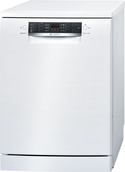Máy rửa bát BOSCH SMS46MW00E được thiết kế với gam màu trắng mang lại không gian hiện đại cho căn bếp.