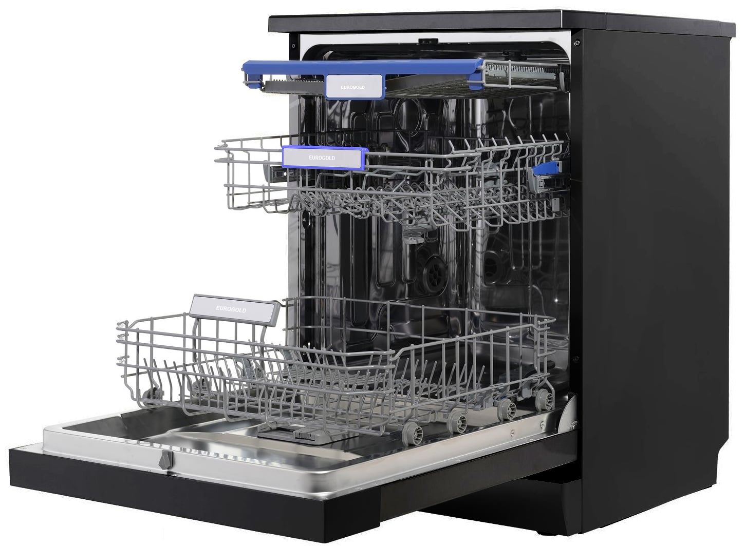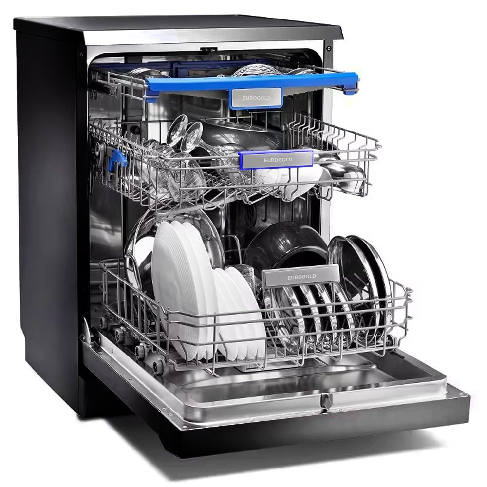 Tăng tính thẩm mỹ cho gian bếp gia đình: Thiết kế sang trọng, hiện đại máy rửa bát 14 bộ Eurogold EUW85TL15B dễ dàng chinh phục được mọi không gian bếp. màu inox đen, tinh tế tới từng chi tiết, không khó để tạo điểm nhấn nổi bật.