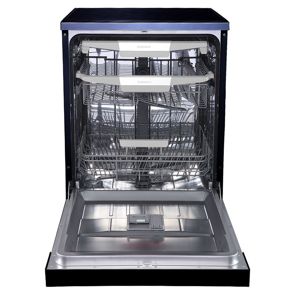 Máy rửa bát Eurogold EUW88TL15BB trang bị 3 ngăn chứa cơ động. Hệ thống ray nâng hạ Flexible Space thông minh dễ dàng thay đổi chiều cao giữa các khay.